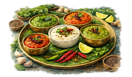 In Indian cuisine, chutneys and accompaniments aren’t just extras, they’re essential. Each one is designed to balance flavor, heat, texture, and richness, allowing you to customize every bite. Sweet, tangy, spicy, savory, and cooling elements work together to enhance the meal, not overpower it.